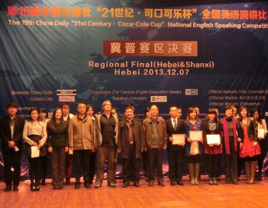 ,我系英语专业陈东杰同学在由中国日报社、可口可乐大中华区联合主办,二十一世纪英语教育传媒承办的第十九届中国日报社“21世纪可口可乐杯”全国英语演讲比赛晋冀赛区决赛中表现优异,荣获季军,并成功晋级该项赛事的全国半决赛。